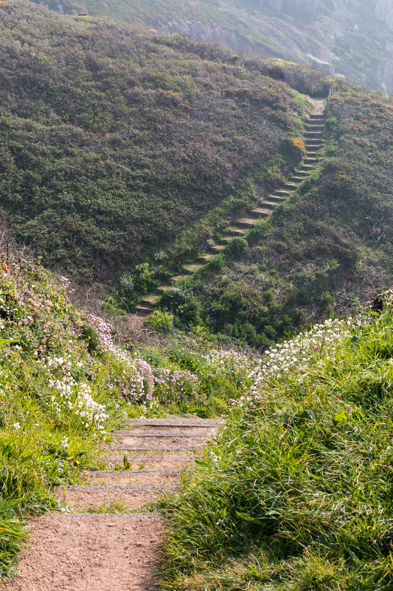 On another day we parked our car at the minuscule car park at 49.425043, -2.639183 to walk along the southwest coast. We started with a walk toward the east before turning around, double-backing, and then walking west of the car park, where we appreciated views of the arch at 49.425593, -2.646324 (the best vantage point is from 49.426458, -2.649473).